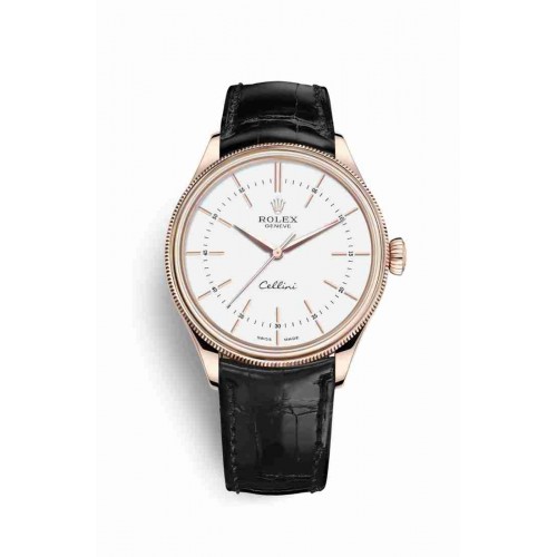 Some Official Information of this Replica Rolex Cellini Time Everose gold 50505 White Dial Watch