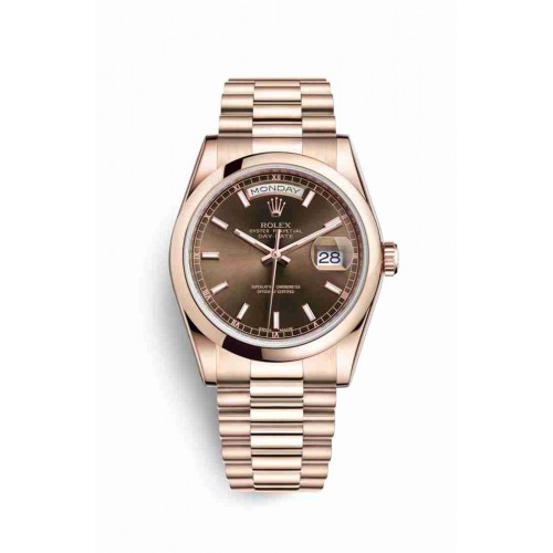 Some Official Information of this Replica Rolex Day-Date 36 Everose gold 118205 Chocolate Dial Watch