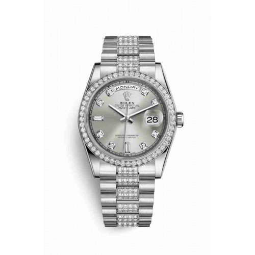 Rolex Day-Date 36 Platinum Silver diamonds m118346-0016