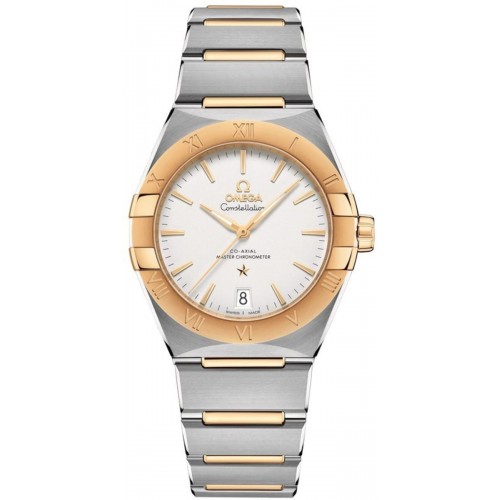 Omega Constellation Co-Axial Master Chronometer Silver Dial Yellow Gold and Stainless Steel Men‘s Watch Model 131.20.36.20.02.002. Yellow Gold and Stainless Steel case with Brushed and Polished Yellow Gold and Stainless Steel watch band. Deployment with Push Button and Foldover clasp. Fixed bezel. Dial description: Yellow Gold hands and Index hour markers with minute markers around the outer rim on a Silver dial. Automatic movement. Powered by Omega Calibre 8800 engine with 55 hours power reserve. Watch functions: Date, Power Reserve, Hour, Minute, Second. Scratch Resistant Sapphire crystal. Round case shape. Case size: 36mm. Transparent case back. . Also known as model: 13120362002002.