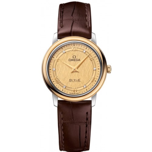 Omega De Ville Prestige Quartz 27.4mm Champagne Diamond Dial Yellow Gold and Steel Women‘s replica watch 424.23.27.60.58.001,high quality Fake Omega De Ville Prestige 424.23.27.60.58.001