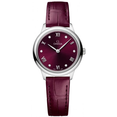 Omega De Ville Prestige Quartz 27.5mm Burgundy Diamond Dial Women‘s replica watch 434.13.28.60.61.001,high quality Fake Omega De Ville Prestige 434.13.28.60.61.001