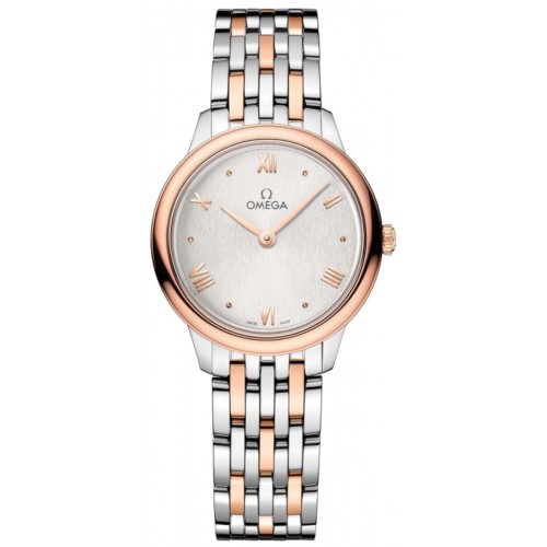 Omega De Ville Prestige Quartz 27.5mm Silver Dial 18k Rose Gold and Steel Women‘s replica watch 434.20.28.60.02.001,high quality Fake Omega De Ville Prestige 434.20.28.60.02.001
