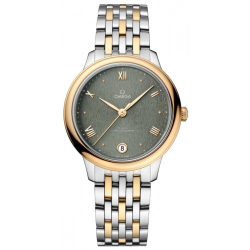 Omega De Ville Prestige Co-Axial Master Chronometer Small Seconds 41mm Green Dial Yellow Gold and Steel Women‘s Watch Model 434.20.34.20.10.001. Yellow Gold and Stainless Steel case with Yellow Gold and Stainless Steel watch band. Deployment clasp. Dial description: Gold tone hands and Roman Numeral/Index hour markers with minute markers around the outer rim on a Green dial. Automatic movement. Powered by Omega Calibre 8800 engine with 55 hours power reserve. Watch functions: Date, Power Reserve, Hour, Minute, Second. Scratch Resistant Sapphire crystal. Round case shape. Case size: 34mm. Case thickness: 10.1mm. Transparent case back. . Also known as model: 43420342010001.
