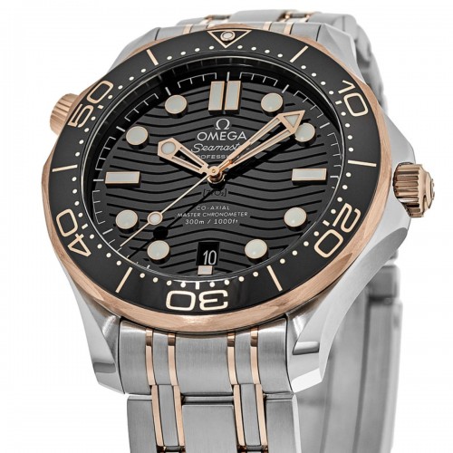 Replica Omega Seamaster Diver 300m Co-Axial Master Chronometer 42mm Sedna Gold &Steel Men‘s Watch 210.20.42.20.01.001