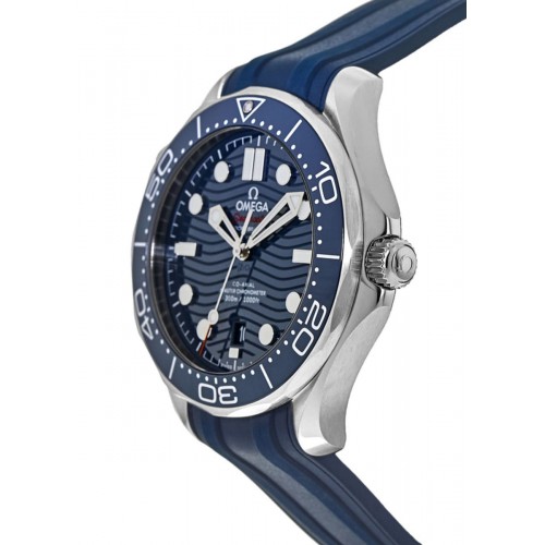 Omega Seamaster Diver 300 M Blue Dial Rubber Strap Men‘s Watch Model 210.32.42.20.03.001. Stainless Steel case with Blue Rubber strap. Tang clasp. Uni-Directional Rotating bezel. Dial description: Laser-Engraved Waves, Silver tone skeleton hands and Circle/Index hour markers with minute markers around the outer rim on a Blue dial. Automatic -Chronometer movement. Powered by Omega Caliber 8800 engine with 55 hours power reserve. Watch functions: Date, Power Reserve, Hour, Minute, Second. Scratch Resistant Sapphire crystal. Round case shape. Case size: 42mm. Transparent case back. . For the man who craves adrenaline, the Omega Seamaster Diver is the missing piece you鈥檝e been looking for. This hardy, robust sports watch features a smooth royal blue theme, encompassing the dial and bezel, combined with a rubber strap that is as comfortable as it is durable, perfect for your adventures under the sea. Also known as model: 210-32-42-20-03-001, 21032422003001.