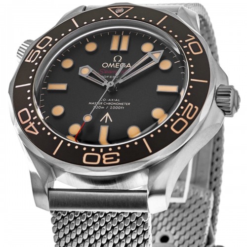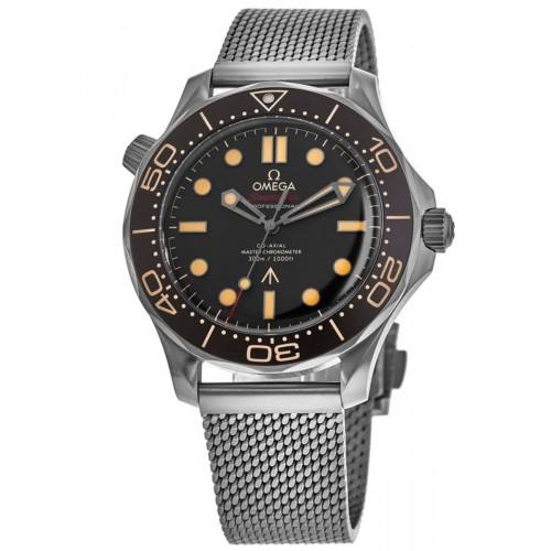 Omega Seamaster Diver 300 M James Bond 007 Edition No Time To Die Men‘s Watch Model 210.90.42.20.01.001. Titanium case with Silver Titanium watch band. Automatic Chronometer movement. Powered by Omega Calibre 8806 engine with 55 hours power reserve. Watch functions: Power Reserve, Hour, Minute, Second. Scratch Resistant Sapphire crystal. Round case shape. Case size: 42mm. 300 Meters - 990 Feet water resistant. 5 year . Also known as model: 21090422001001.