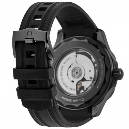 Omega Seamaster Diver 300 M Black Black Ceramic Men‘s Watch Model 210.92.44.20.01.003. Black Ceramic case with Black Rubber strap. Tang clasp. Uni-Directional Rotating bezel. Dial description: Black hands and Index/Dot hour markers with minute markers around the outer rim on a Black dial. Automatic - Chronometer movement. Powered by Omega Calibre 8806 engine with 55 hours power reserve. Watch functions: Power Reserve, Hour, Minute, Second. Screw In crown. Scratch Resistant Sapphire crystal. Round case shape. Case size: 43.5mm. Case thickness: 14.5mm. Transparent case back. . Also known as model: 21092442001003.