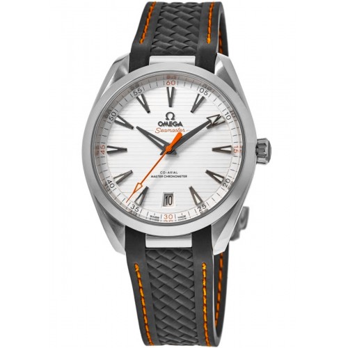 Omega Seamaster Aqua Terra 150m Master Co-Axial Silver Dial Rubber Strap Men‘s Watch Model 220.12.41.21.02.002. Stainless Steel case with Grey Rubber strap. Deployment with Push Button clasp. Fixed bezel. Dial description: Grey Luminous filled hands and Index hour markers with minute markers around the outer rim and Orange accents on a Horizontal Linear Textured Silver dial. Automatic - Chronometer movement. Powered by Omega Caliber 8900 engine with 60 hours power reserve. Watch functions: Date, Power Reserve, Hour, Minute, Second. Screw in crown. Scratch Resistant Sapphire crystal. Case size: 41mm. Case thickness: 13.2mm. Transparent case back. . Also known as model: 22012412102002.