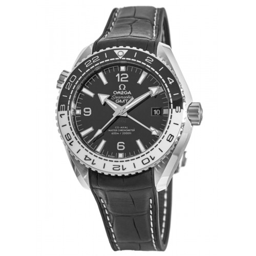 Store Display Authentic Omega Seamaster Planet Ocean 600M GMT Steel on Leather Strap Men‘s Watch Model 215.33.44.22.01.001-SD. Stainless Steel case with Black Alligator Leather with Rubber Lining strap. Folding clasp. Uni-Directional Rotating bezel. Dial description: Luminous Silver tone hands and Arabic numerals/Index hour markers on a Black dial. Automatic - Chronometer movement. Powered by Omega Calibre 8906 engine with 60 hours power reserve. Watch functions: Date, Power Reserve, Hour, Minute, Second, GMT. Screw Down crown. Scratch Resistant Sapphire crystal. Case size: 44mm. Transparent case back. .