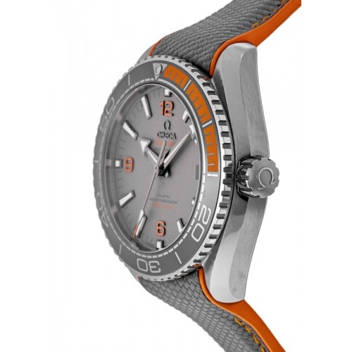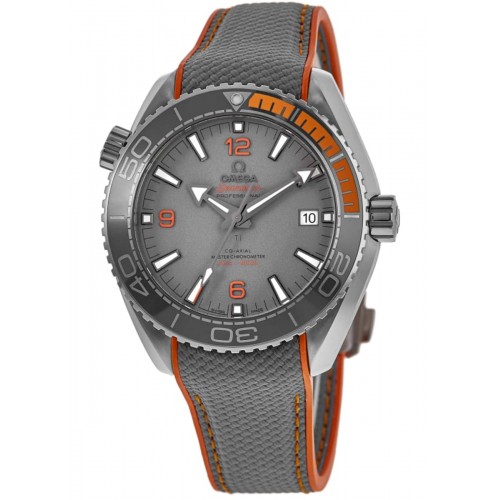 Omega Seamaster Planet Ocean 600M 43.5mm Titanium Case Grey Rubber Strap Men‘s Watch Model 215.92.44.21.99.001. Titanium case with Gray Rubber with Orange Stitching strap. Folding clasp. Uni-Directional bezel. Dial description: Gray with Date Display dial. Grey dial. Automatic, 60 Hour Power Reserve movement. Screw Down crown. Scratch Resistant Sapphire crystal. Case size: 44mm. Transparent case back. . Also known as model: 21592442199001, 215-92-44-21-99-001, O21592442199001.