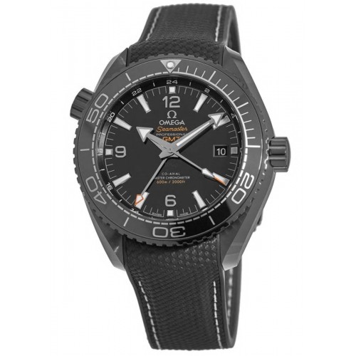 Replica Omega Seamaster Planet Ocean 600M GMT Deep Black Ceramic Rubber Strap Men‘s Watch 215.92.46.22.01.001