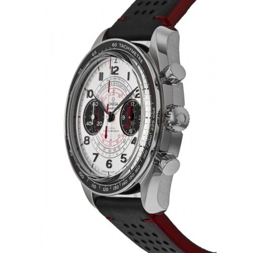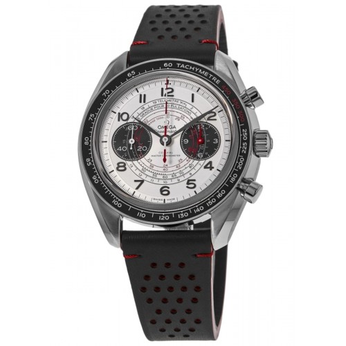 Omega Speedmaster Chronoscope Co-Axial Master Chronometer Chronograph 43 mm Silver Dial Men‘s Watch Model 329.32.43.51.02.001. Stainless Steel case with Black Leather strap. Tang clasp. Dial description: Black hands and Arabic Numeral hour markers with minute and second markers around the outer rim and 2 sub-dials on a Silver dial. Manual Wind - Chronometer and Chronograph movement. Chronograph sub-dials display: 60 Second, 12 Hours. Powered by Omega Caliber 9908 engine with 60 hours power reserve. Watch functions: Power Reserve, Hour, Minute, Second, Chronograph. Scratch Resistant Sapphire crystal. Round case shape. Case size: 43mm. Transparent case back. . Also known as model: 32932435102001.