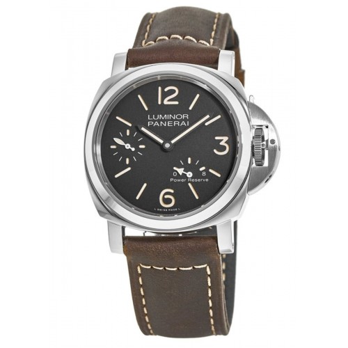 Panerai Luminor 8 Days Power Reserve 44mm Black Dial Leather Strap Men‘s Fashion Watch Model PAM00795. AISI 316L Polished Steel case with Brown Calfskin Leather strap. Tang clasp. Fixed bezel. Dial description: Black with Luminous Arabic and Stick Numerals and Hour markers dial. Automatic Self Winding movement. Chronograph sub-dials display: Small Seconds, Power Reserve. Powered by Calibre P.5002 engine with 192 hours power reserve. Watch functions: Power Reserve, Hour, Minute, Second. Scratch Resistant Sapphire crystal. Case size: 44mm. Solid case back. .