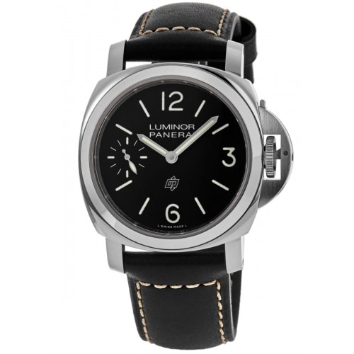 Panerai Luminor Black Dial Leather Strap Men‘s Watch Model PAM01084. Stainless Steel case with Black Calfskin Leather strap. Tang clasp. Fixed bezel. Dial description: Luminous silver tone hands and Arabic Numeral/Index hour markers with a Small Seconds Sub-dial on a Black dial. Hand-Wound movement. Chronograph sub-dials display: Small Seconds. Powered by Panerai Calibre P.6000 engine with 72 hours power reserve. Watch functions: Power Reserve, Hour, Minute, Second. Scratch Resistant Sapphire crystal. Round case shape. Case size: 44mm. Solid case back. .