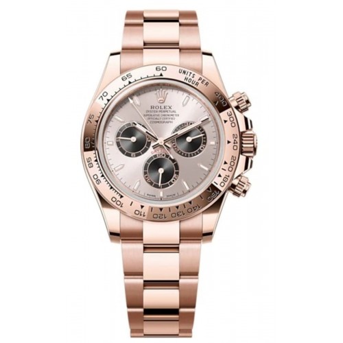 Rolex Cosmograph Daytona Rose Gold Sundust and Black Dial Men‘s Luxury Watch Model M126505-0003. Brushed and Polished 18k Rose Gold. case with Brushed and Polished 18k Rose Gold Oyster Style Bracelet. watch band. Oysterclasp clasp. Fixed, with Engraved Tachymetric Scale, in 18k Rose Gold. bezel. Dial description: Luminescent 18k Rose Gold Hands and Stick Hour Markers with 3 Sub-Dials; 30 Minute at 3 o‘clock, 60 Second at 6 o‘clock, and 12 Hour at 9 o‘clock, Displayed on a Sundust and Black Dial. dial. Perpetual, Mechanical Chronograph, Self-Winding. movement. Chronograph sub-dials display: 60 Second, 30 Minute, 12 Hours. Powered by Rolex Caliber 4131 engine with 72 hours power reserve. Watch functions: Power Reserve, Hour, Minute, Second, Chronograph, Speed. Screw-Down crown. Scratch Resistant Sapphire crystal. Round case shape. Case size: 40mm. Monobloc Middle Case, Screw-Down Case Back and Winding Crown.. 100 Meters - 330 Feet water resistant. 5 year . New 2023 Model\r\n