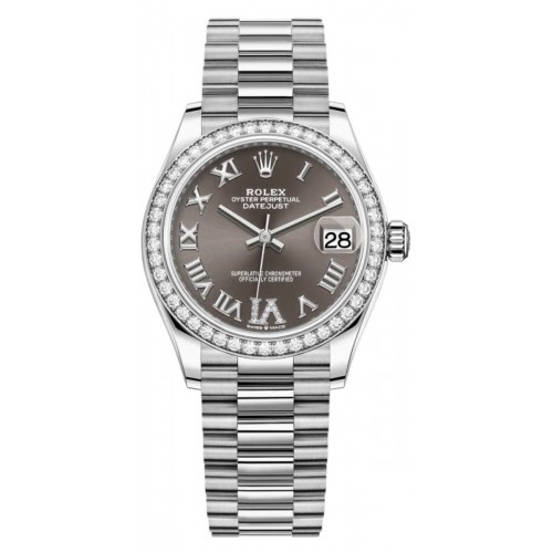 Rolex Datejust 31 White Gold Dark Grey Roman Dial Diamond Bezel Women‘s replica watch M278289RBR-001..