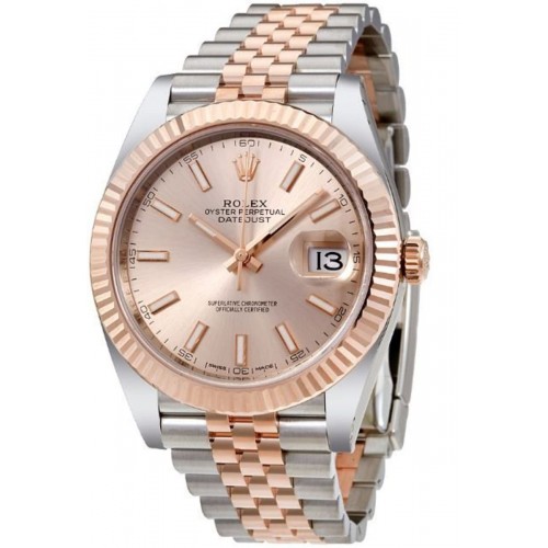 Rolex Datejust 41 Men‘s Watch Model M126331-0010. Stainless Steel with 18kt Rose Gold case with Stainless Steel and 18kt Rose Gold watch band. Folding clasp. Fluted bezel. Silver dial. Automatic Self Winding movement. Screw Down crown. Scratch Resistant Sapphire crystal. Case size: 41mm. Solid case back. .