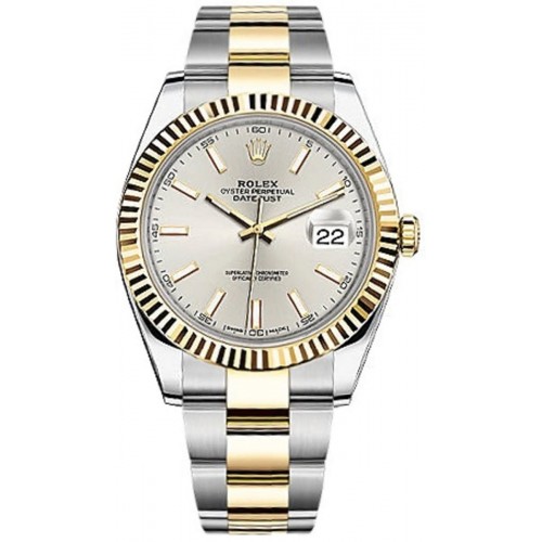 Rolex Datejust 41 Men‘s Watch Model M126333-0001. Stainless Steel with 18kt Yellow Gold case with Stainless Steel and 18kt Yellow Gold watch band. Folding clasp. Fluted bezel. Silver dial. Automatic Self Winding movement. Screw Down crown. Scratch Resistant Sapphire crystal. Case size: 41mm. Solid case back. .