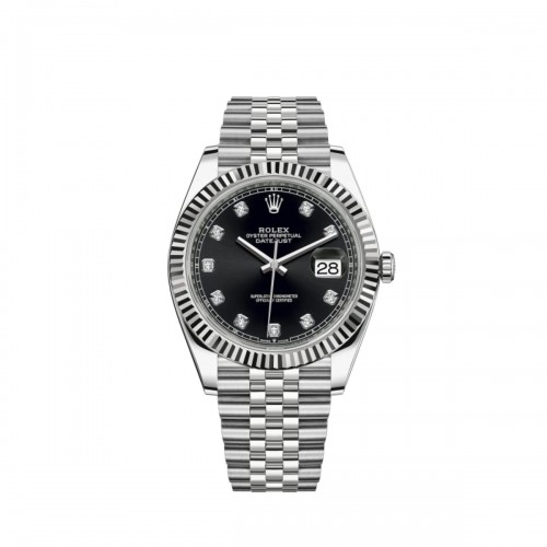 Rolex Datejust 41 Men‘s Watch Model M126334-0012. Stainless Steel with 18kt White Gold case with Stainless Steel and 18kt White Gold watch band. Folding clasp. Fluted bezel. Black dial with Silver Diamond Automatic Self Winding movement. Powered by Rolex Calibre 3235 engine with 70 hours power reserve. Screw Down crown. Scratch Resistant Sapphire crystal. Case size: 41mm. Solid case back. .