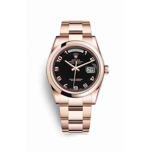 Some Official Information of this Replica Rolex Day-Date 36 Everose gold 118205 Black Dial Watch